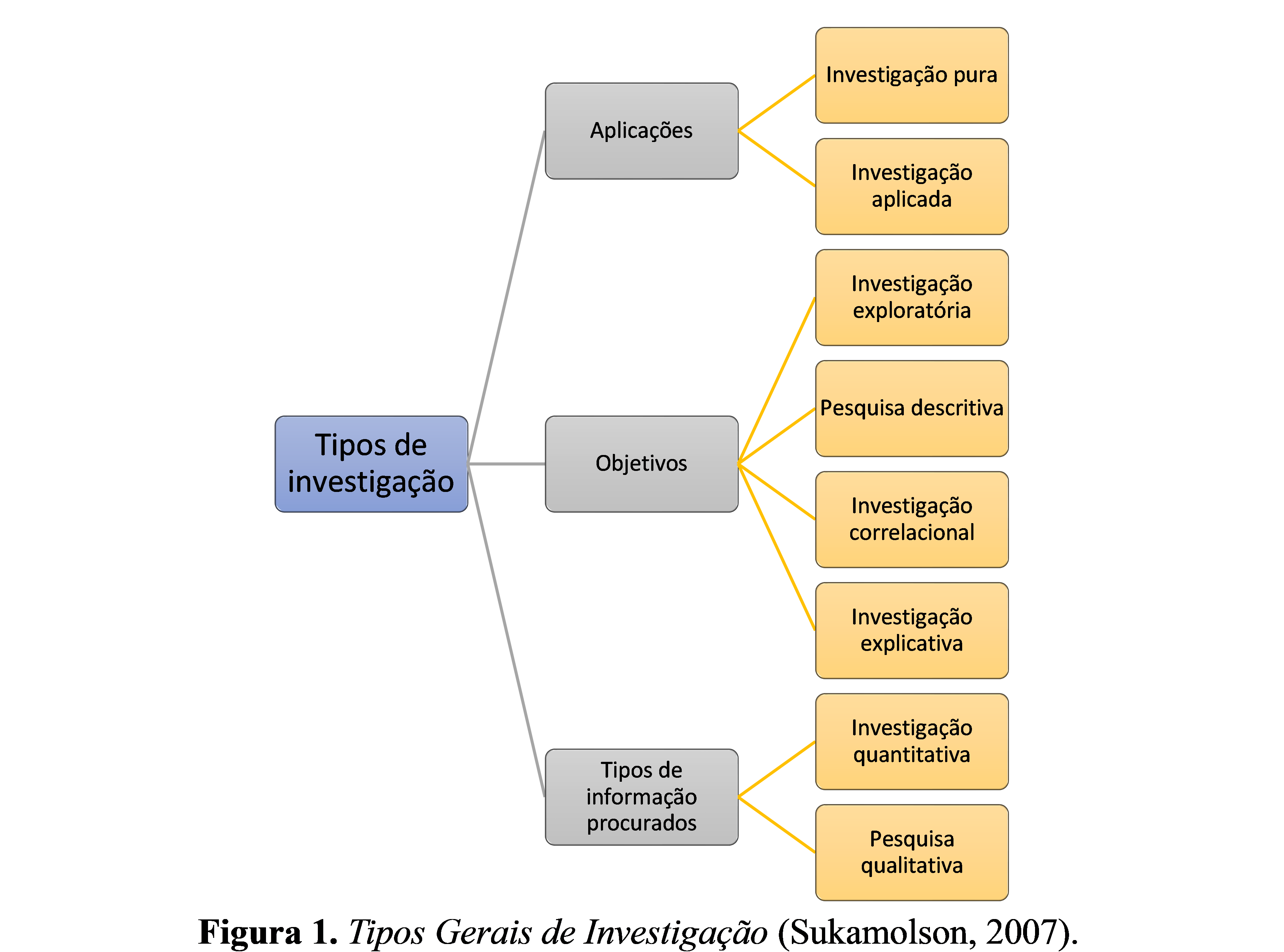 A pesquisa pode ser classificada em três grupos principais com base na aplicação do estudo de pesquisa, seus objetivos na realização da pesquisa e como a informação é buscada (Fig. 1).