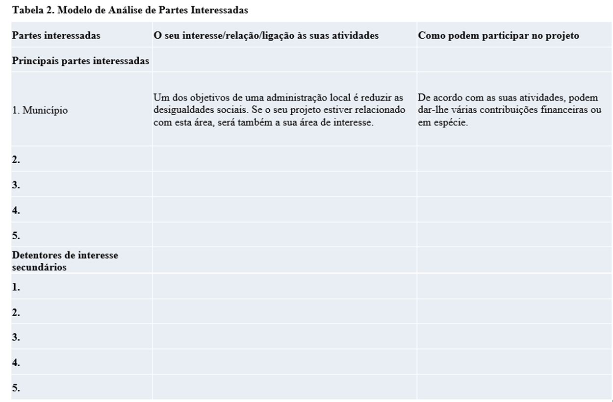 Pode também utilizar um guia de subvenções ou um convite à apresentação de propostas se tiver dificuldade em relacionar o seu problema principal com o objetivo geral. As instituições e programas de subvenção têm as suas próprias prioridades e objetivos. Você pode usar os sub-propósitos desses programas enquanto determina seu propósito geral. Assim, ao referenciar esses objetivos, você também demonstra a relevância do seu projeto para o programa. Neste caso, pode utilizar estes subobjectivos do programa tal como estão, ou pode utilizar frases originais. Por outro lado, você pode definir um objetivo geral exclusivo usando a árvore que você criou. Neste caso, você precisará resumir brevemente os efeitos no topo da hierarquia em uma frase única e abrangente. Quando consideramos um programa de bolsas relacionado com jovens, um objetivo geral pode ser determinado da seguinte forma: "contribuir para a redução da desvantagem social e económica dos jovens e para a melhoria do seu bem-estar psicológico".