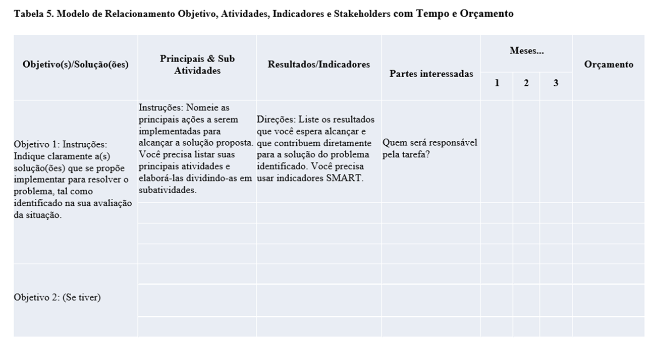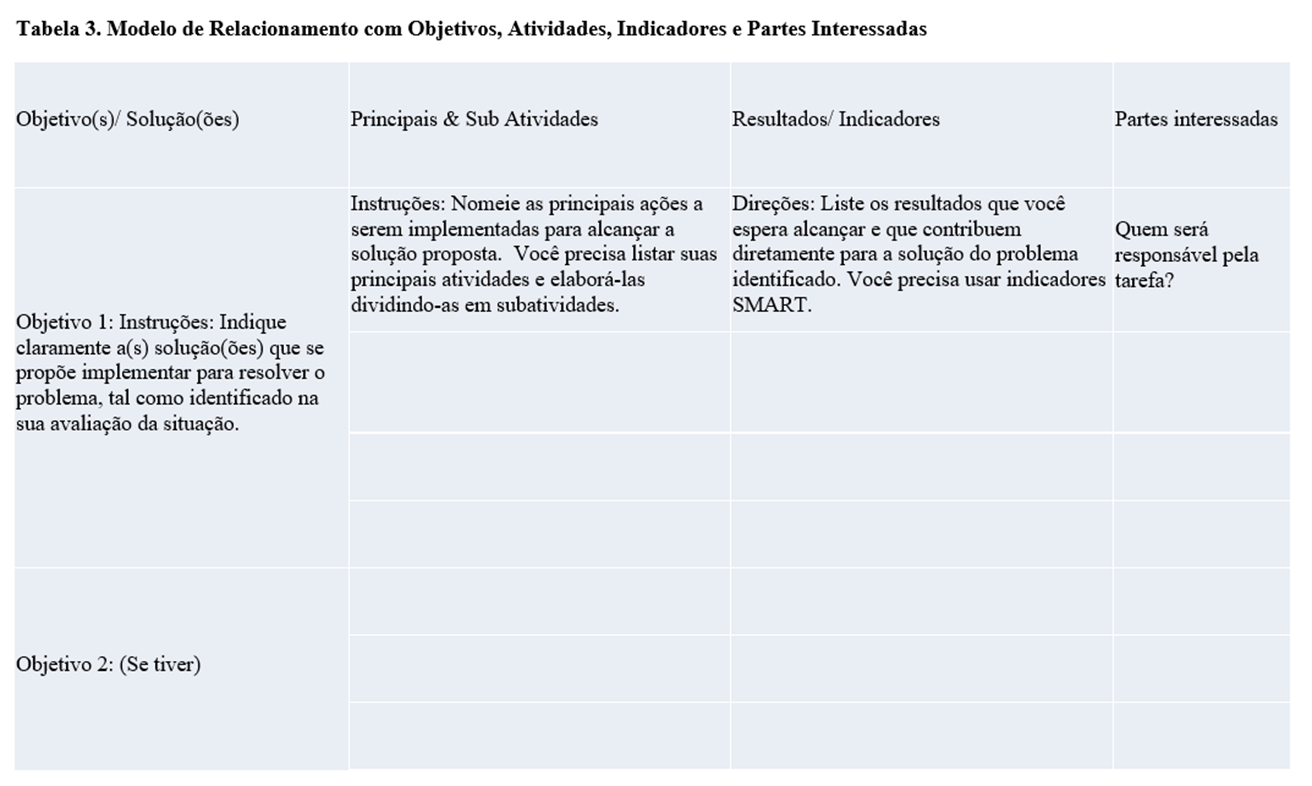 Na medida em que o problema principal é detalhado, ele poderá ser bem analisado, e metas e estratégias poderão ser determinadas. Planejar as atividades necessárias para esses objetivos e estratégias também está relacionado a uma boa análise nesta etapa. Os subproblemas identificados se transformarão em atividades que serão organizadas para alcançar as metas e objetivos nas etapas seguintes (Vesely, 2008).