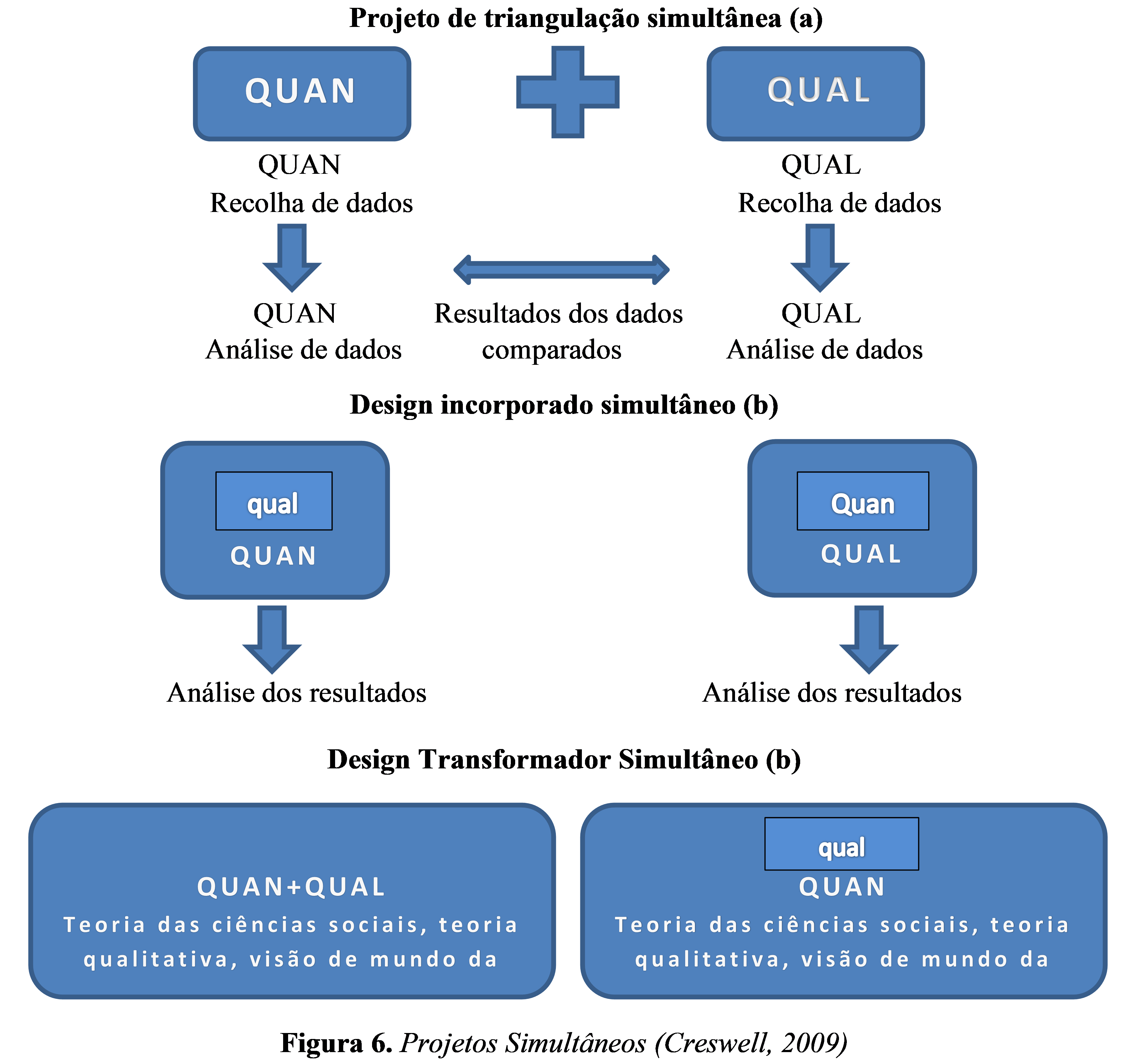- utilizando uma estrutura (teórica ou programa) para ligar os conjuntos de dados (Creswell & Clark, 2011, p. 76).